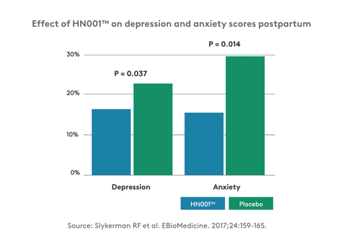 Mean Change in GI Symptom Frequency Score - 3 HN001 reduces postnatal depression and anxiety