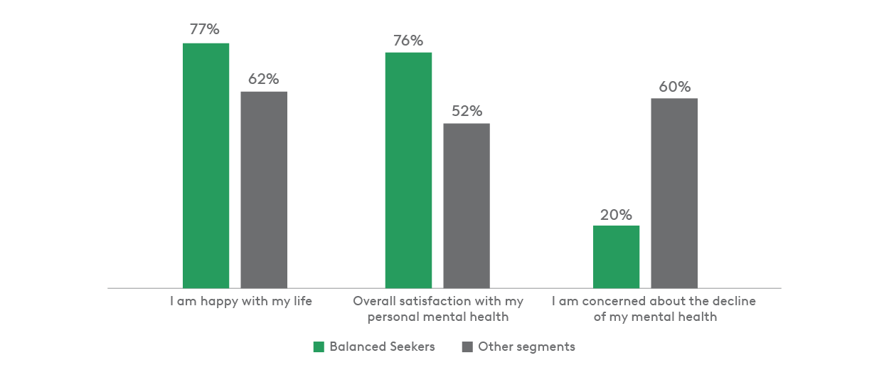 Of all the consumer groups identified, Balanced Seekers are the most satisfied with life overall, and with their personal mental health.