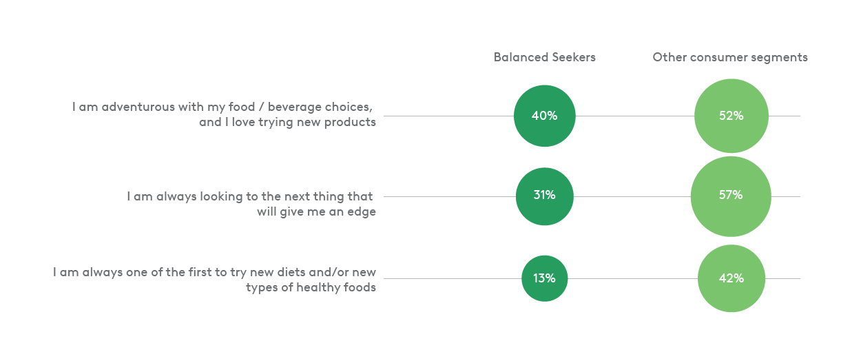 Figure 2: A comparison of Balanced Seekers’ attitudes towards trying new foods against other consumer segments