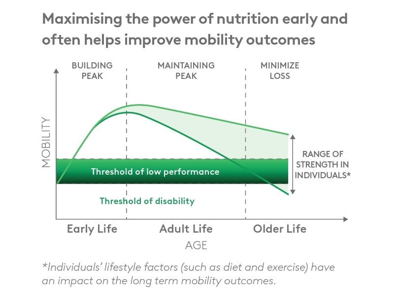 With that in mind, it is critical to build strong foundations for mobility in our early years. A prime example of this is bone strength and density. Up to 90% of our bone mass is developed in the period from childhood through to our early adult years, making this the optimal time to strengthen bone health.7