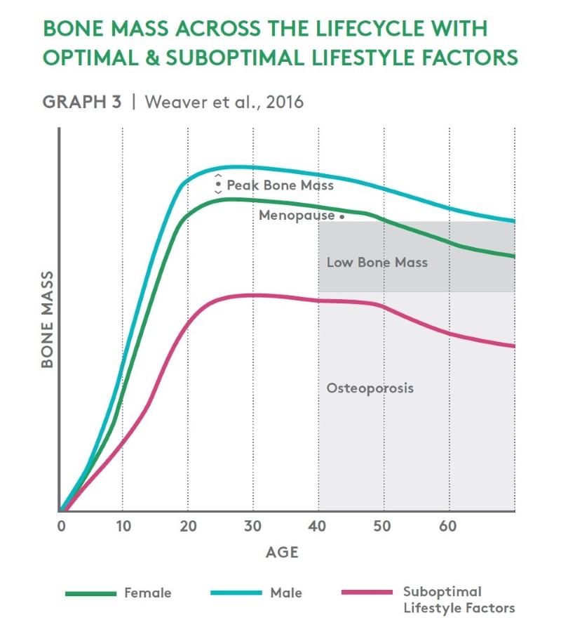 Bone Mass Lifecycle graph Figure 3: How Bone Density Changes Over our Lifetime