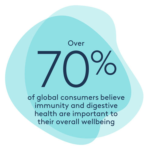 Immunity is one of consumers’ top three health concerns. 50% of global consumers associate immunity with improved overall body function and minimal illnesses or infections¹, and view it as essential to a longer, healthier life.